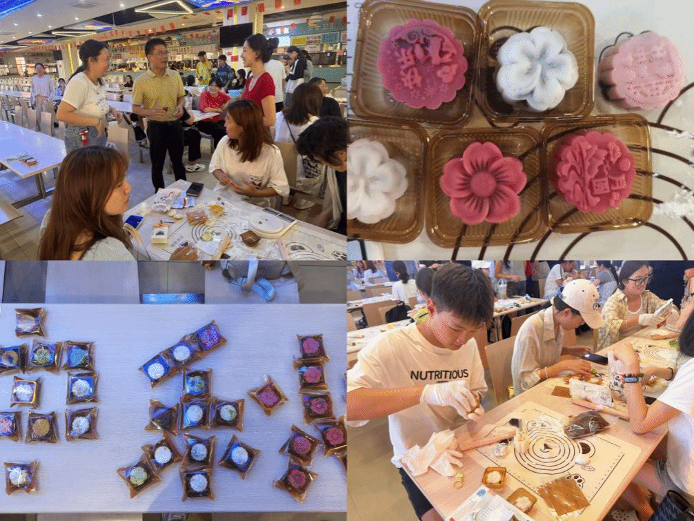 10月1日下午三点半,五食堂二楼迎来“皓月映万家”中秋专场。月饼制作区香气四溢,同学们指尖捏起颜色鲜艳的桃山皮和清透的冰皮,轻轻裹住满勺诱人的馅——豆沙、莲蓉、咸蛋黄在指尖融合,压模成型的“团圆”二字,承载着对亲友的深深牵挂。一旁的中秋知识问答则考验着大家对传统习俗的理解,答对者笑逐颜开,满怀期待参与抽奖。