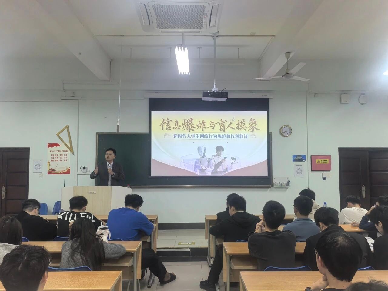讲座中,郑志涛结合当前信息爆炸的时代背景,深刻剖析了大学生在网络空间中的行为特征与潜在风险。他指出,在算法推送和信息茧房的双重作用下,部分大学生逐渐丧失共情能力、理性判断能力和创新能力,陷入网络“致盲”困境,容易被片面信息裹挟,甚至在不经意间参与网络失范行为。